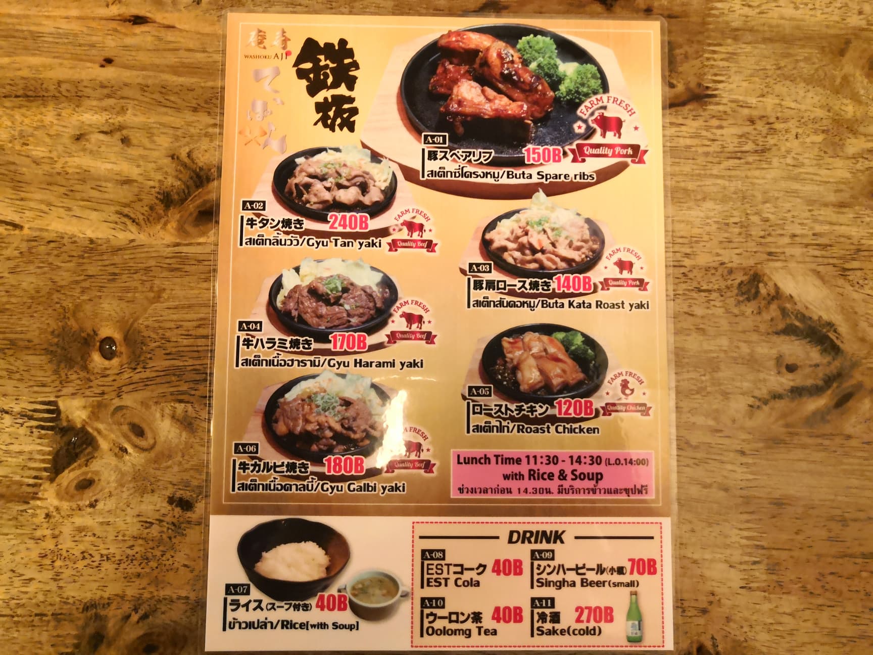 เมนูหลักๆของร้านนี้เลยคือ เมนูข้าวหน้าต่างๆค่ะ ที่เด็ดๆเลยคือหน้าเนื้อต่างๆ เดี๋ยวเราไปดูกันดีกว่าว่า มีเมนูอะไรมาแนะนำกันบ้าง แต่สังเกตเห็นมั้ยคะว่า ราคาไม่ได้แรงเลย คือ พนักงานเงินเดือนย่านพระราม 9 หรือใครที่หาที่ฝากท้องอิ่มๆ มาร้าน Washoku AJI ตึก G พระราม 9 รับรองไม่ผิดหวังค่ะ